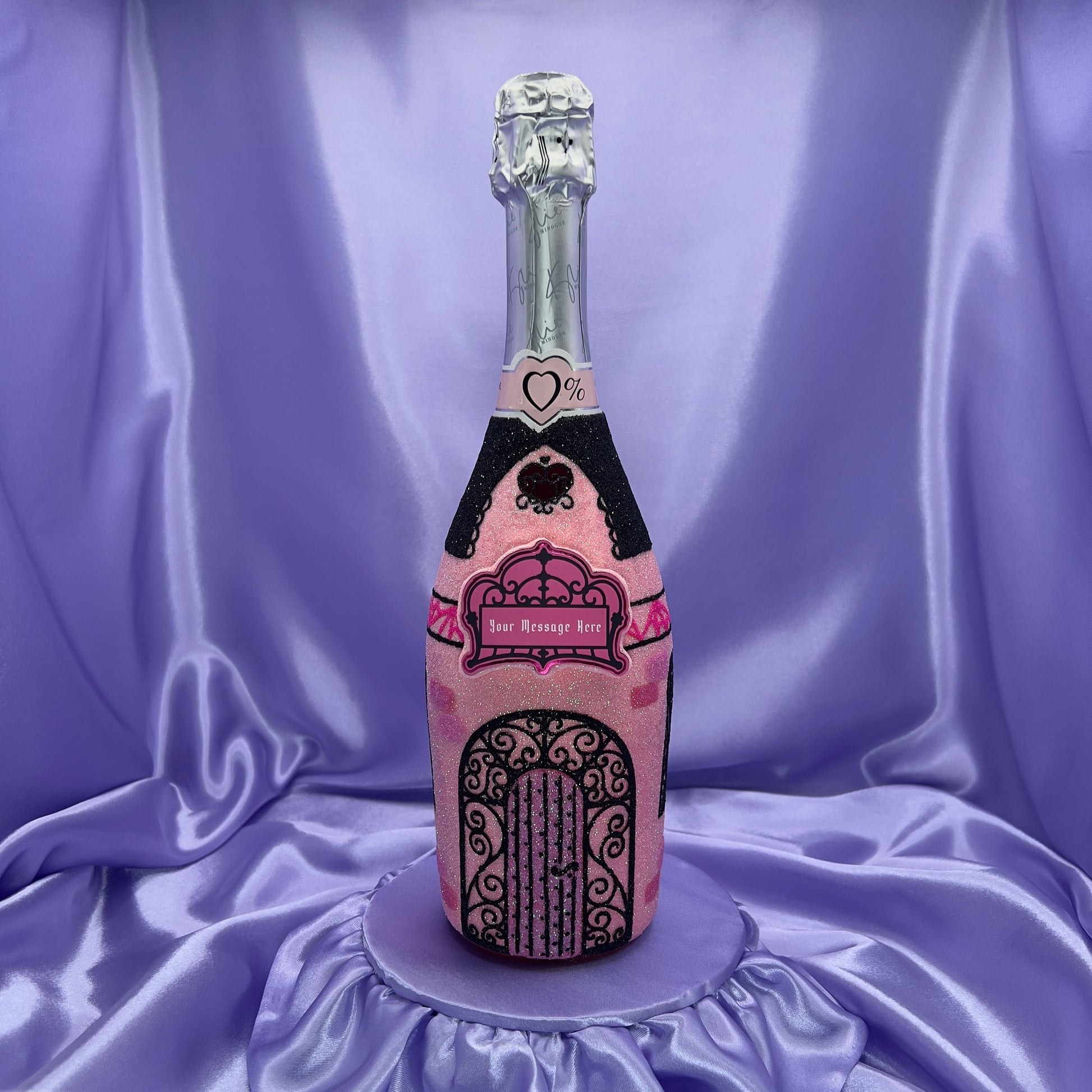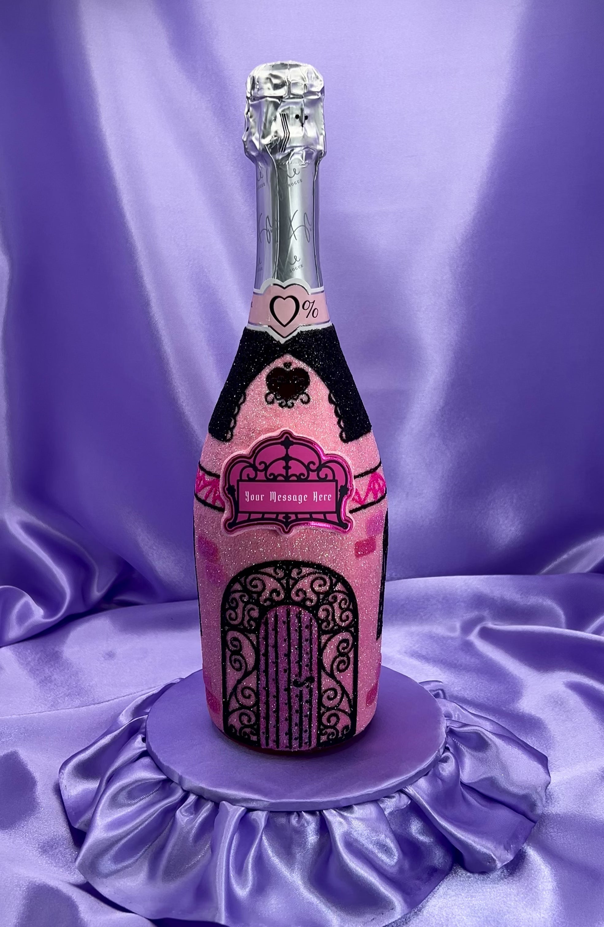 A luxury hand-decorated bottle inspired by Gothic architecture and fairy tale castles, sold as an unopened drink and finished with glitter for dramatic gifting.